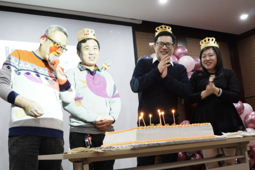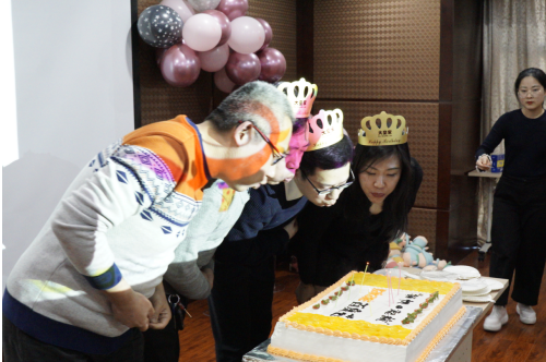 最佳團隊獎(二):臨床部——張軒;屈彬彬;高亞平;楊玲玲 隨后,全場響起了生日祝福歌,主持人邀請百康芯1月份壽星們上臺,各位壽星小伙伴們圍在蛋糕前,雙手合十,許下了她們的新年與生日愿望,百康芯全體小伙伴們?yōu)楦魑猾I上了最真誠的祝福。